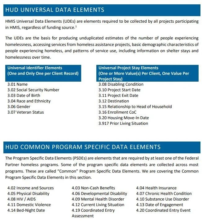 The Department of Housing & Urban Development (HUD) is asking for feedback on to HMIS data elements. These are the required questions and response options in HMIS that are asked across the country - the stuff we cannot change at the local level.