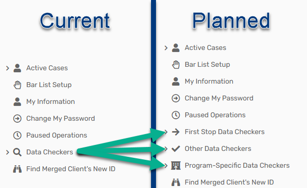 The Common Data Checker (148) will be getting a rebuild to make it run more efficiently and be easier to use. We anticipate that this change will reduce the chance of the data checker timing out as well as align the layout of the data checker with the 'Client & Enrollment Detail' tab of the Data Quality Report (002). As part of this change, we've also moved some items out of the Common Data Checker and into the new Assessment Data Checker.